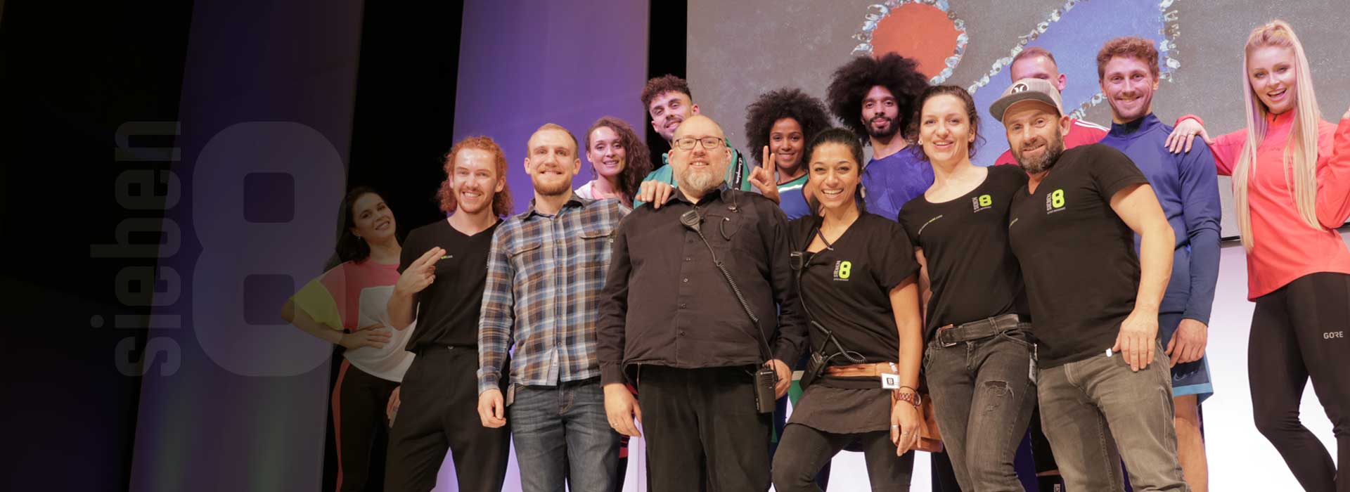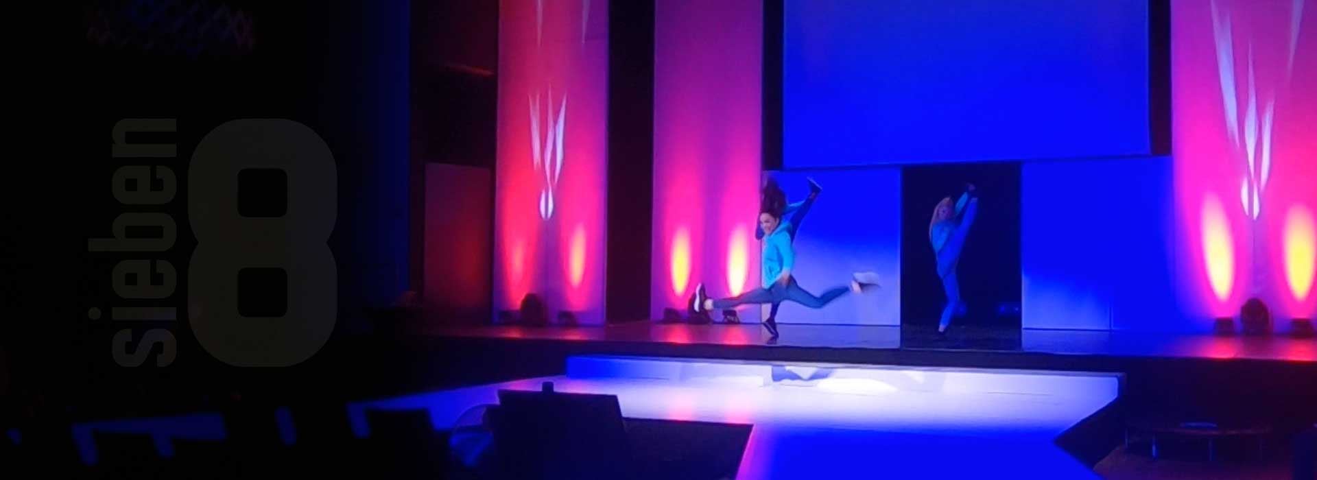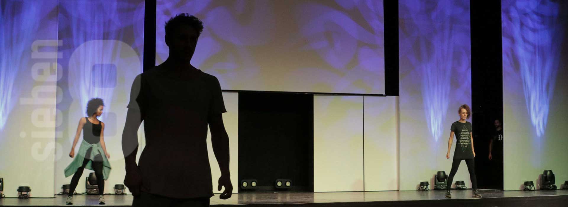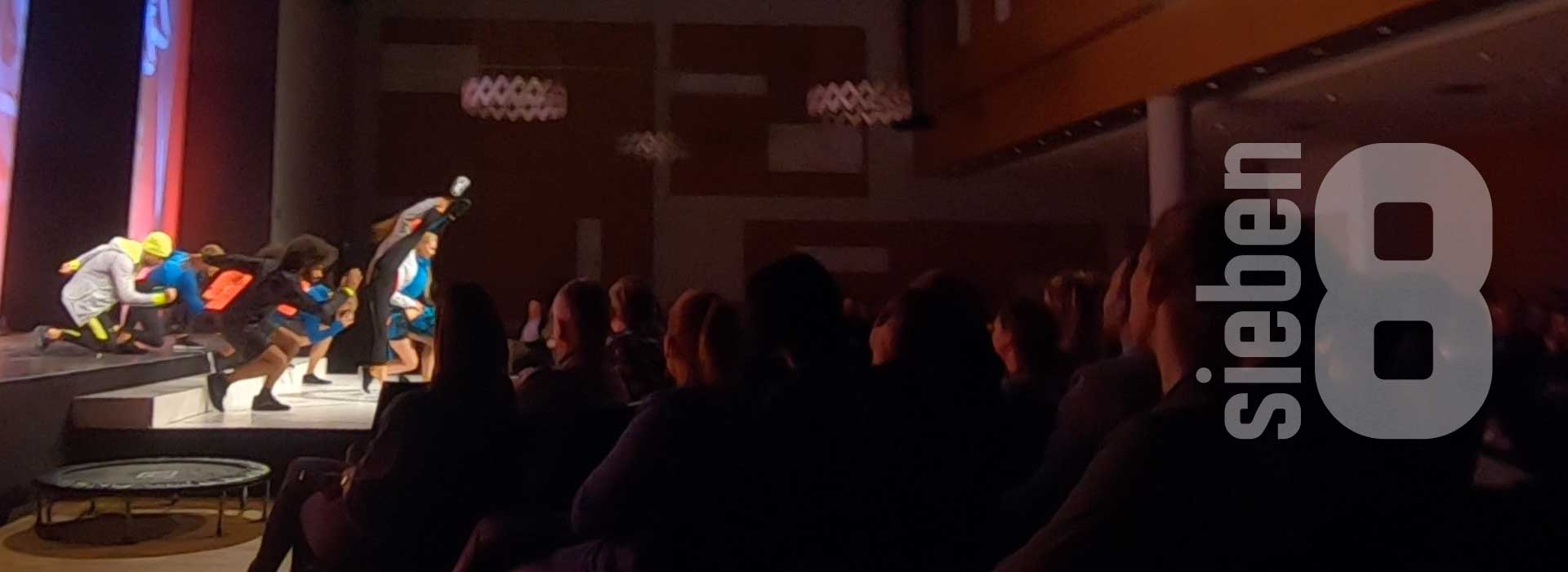 Was dieses sieben8 Messe-Event von Anfang an so besonders macht? Es startet mit einem AC/DC Song, zu dem die Tänzer und Artisten das Publikum in den Veranstaltungssaal ziehen. Auch das Bühnen-Set-up ist außergewöhnlich, denn die Zuschauer sitzen mittendrin statt nur davor. Durch Trampoline zwischen Bühne und Catwalk überraschen die Künstler während der Show mit hohen Sprüngen und artistischen Effekten. Und auch die passend zu den Warengruppen gewählten coolen Beats und der punktgenaue Einsatz von Licht und Bühnentechnik machen dieses Event zu reinem Rock’n’Roll.