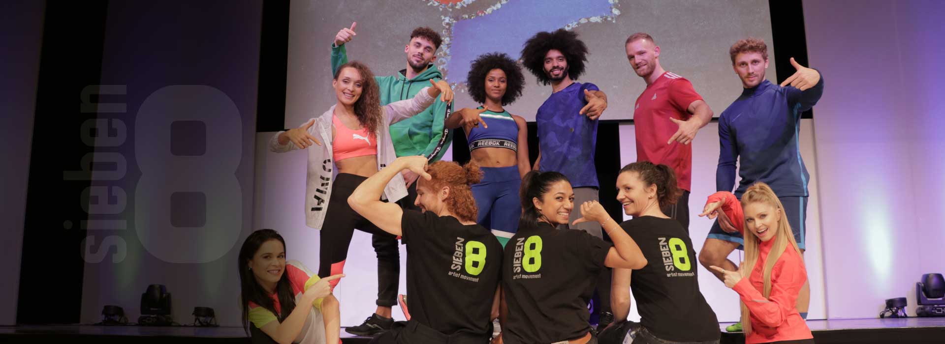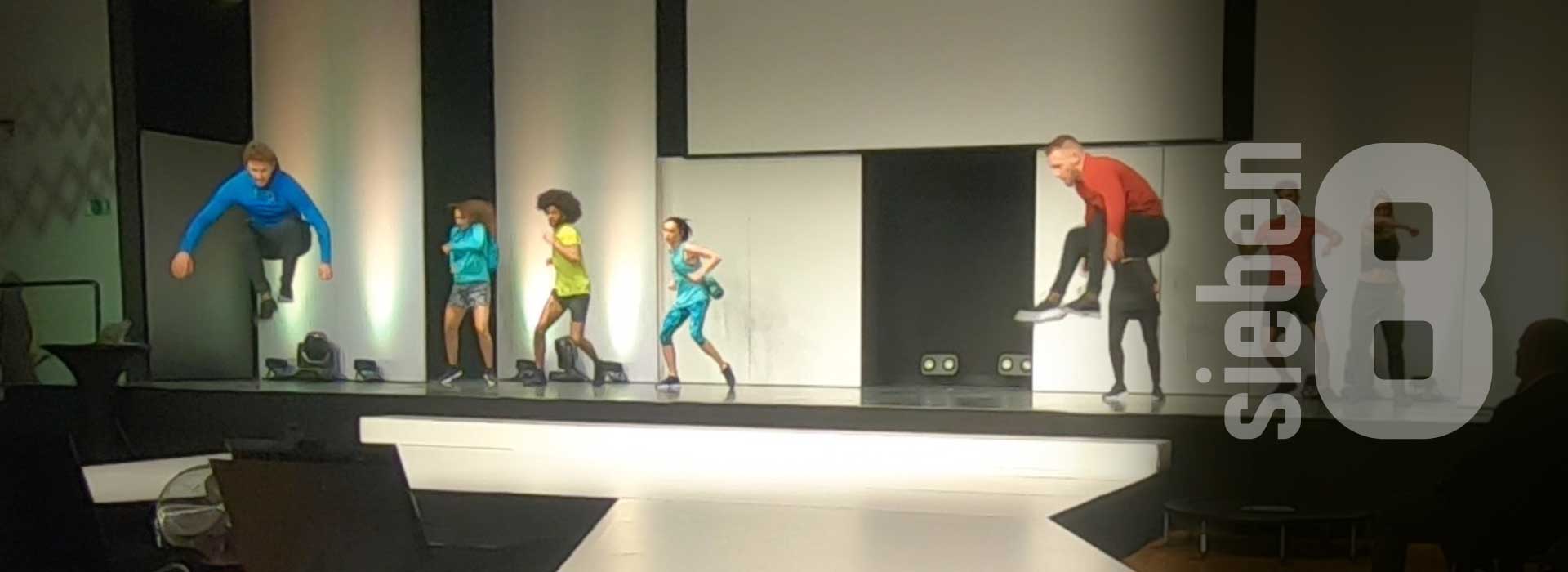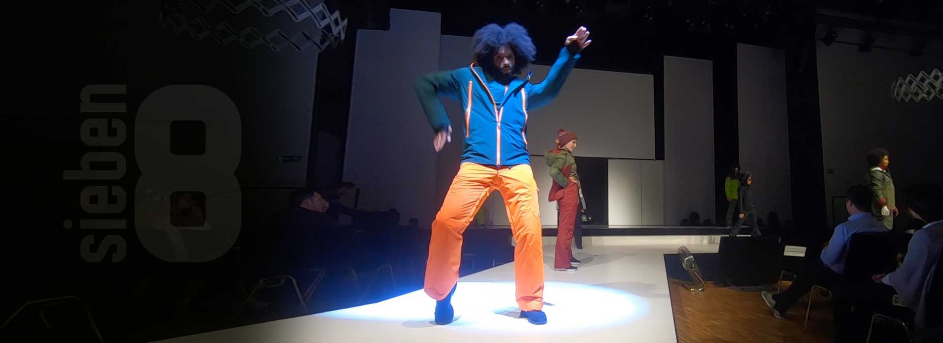 Für die Intersport Exklusivmarken und Trendmarken wie Puma, Champion, adidas, Reebok, Nike, Asics und Brooks inszeniert sieben8 eine energiegeladene Fashionshow. Drei Tänzerinnen, zwei Tänzer, eine Akrobatin und zwei Tricker zeigen pure Power und akrobatische Höchstleistungen: Salti und Flic Flacs über den Catwalk plus ein durchdachtes Gesamtkonzept sorgen bei den Intersport Key-Accountern für große Begeisterung.