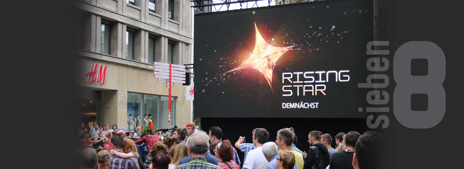 Die neue interaktive Castingshow, bei der das TV-Publikum die Jury ist. Für das Voting muss eine App heruntergeladen und ein Selfie erstellt werden, das beim Vote für einen Künstler auf der LED-Wand der Show erscheint. Um diese Mechanik zu bewerben und den Voting-Vorgang zu pushen, veranstaltete RTL ein Public Event mit der original LED Wand. Die potentiellen Jurymitglieder wurden von als Nonnen, Punks und Senioren „getarnten“ sieben8 Künstlern überrascht – die sich als super Sänger/Tänzer/Künstler entpuppten. Ziel erreicht: Maximale Aufmerksamkeit und zahlreiche Selfies auf der Rising Star LED-Wand!
